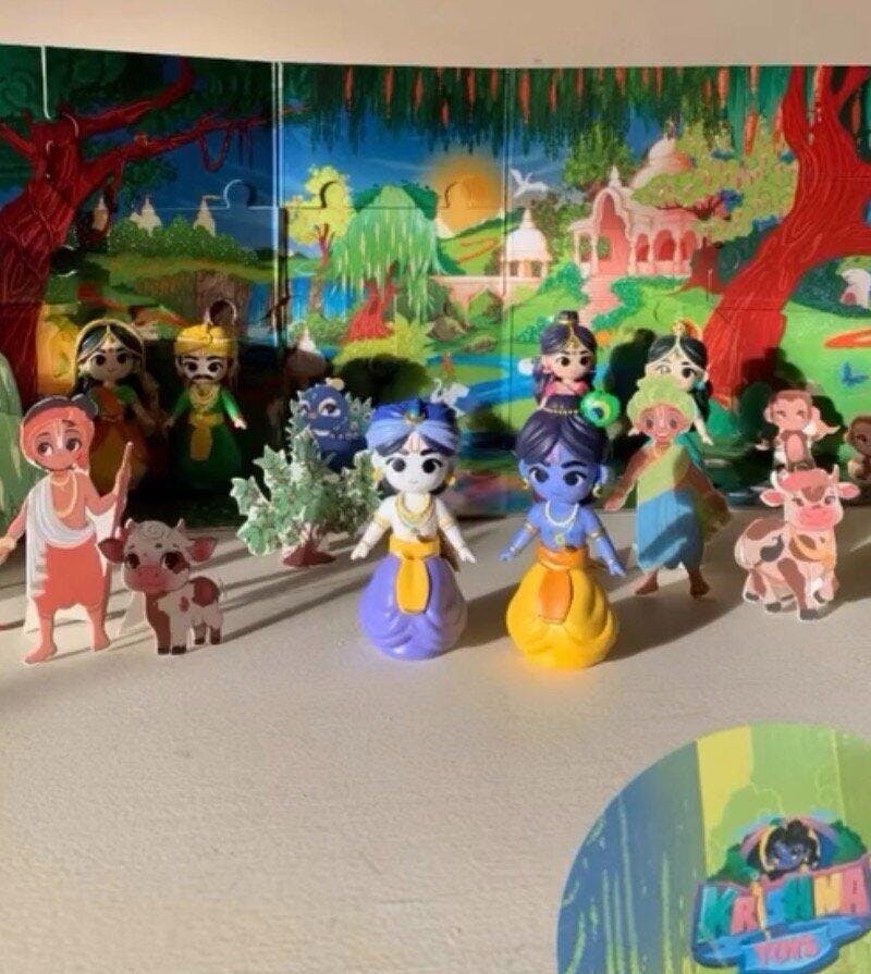 We have designed the toy format such that the child retains interest by playing Krishna-lila.